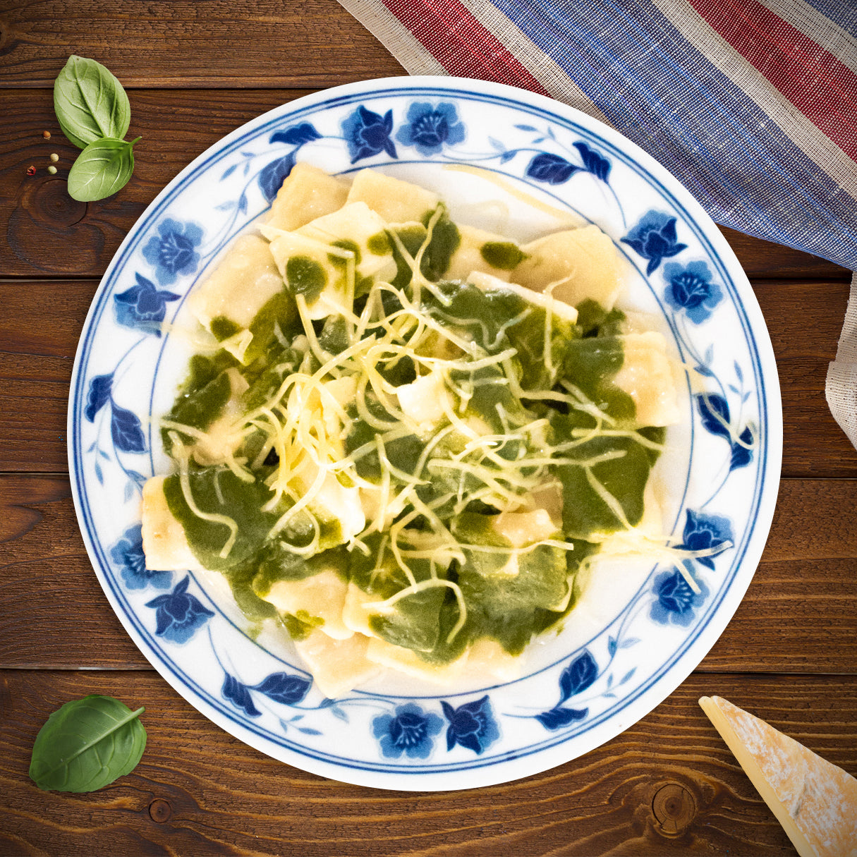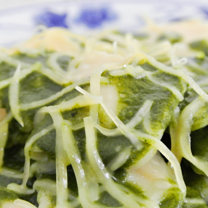 RAVIOLIS CON SALSA DE ESPINACA Y JAMÓN